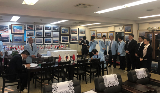 出訪期間,姜仁鋒一行前往大島造船株式會社、瀨野汽船株式會社、三德船舶株式會社進行商務拜訪,三家企業的代表取締役社長平賀英一、瀨野洋一郎、多?R征志對姜仁鋒的到訪予以熱情接待,充分肯定了青島雙瑞壓載水設備及服務,期待繼續在船舶廢氣處理領域深化合作。拜訪三德船舶期間,姜仁鋒與多?R征志簽訂了14艘營運船壓載水改造項目合同,對方表達了與中船重工旗下造船企業開展合作的意向。