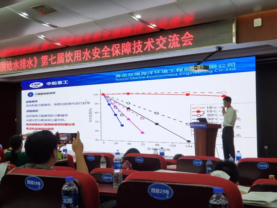 本次會議是中國給水排水領域一次高規格盛會,來自清華大學、上海市政工程設計院、長沙水業集團等數十家高校、設計院和水務集團的400余名代表參會,針對保障我國飲用水安全進行技術交流。青島雙瑞公司工程師在會上作《次氯酸鈉現場制備過程中關鍵控制因素的研究及工程應用》專題報告,對公司飲用水消毒技術和產品進行推介,得到參會嘉賓的高度關注和肯定。