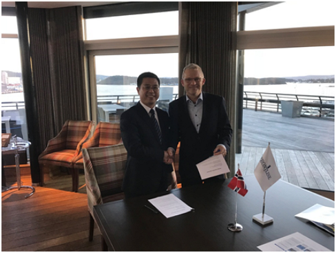 11月12日,青島雙瑞公司與挪威FRONTLINE公司在挪威奧斯陸簽訂營運船壓載水改裝合作協議,為FRONTLINE公司旗下的34條營運船進行壓載水管理系統改裝,船型涵蓋VLCC、蘇伊士油輪、好望角型散貨船等大型船舶。青島雙瑞公司總經理付洪田、FRONTLINE技術總監Lars Pedersen作為雙方代表出席簽約儀式。
