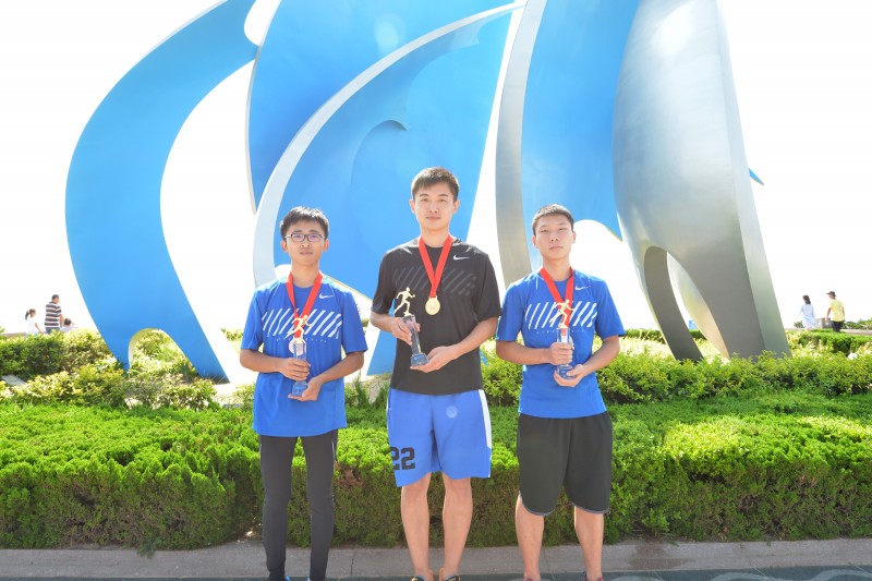 青年男子組前三名獲獎員工在“藍(lán)色的帆”合影