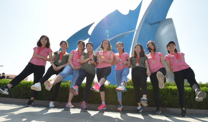 青年女子組獲獎員工在“藍(lán)色的帆”合影